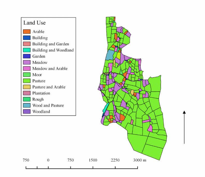 This map is based information in the tithe records. The map was created using the QGIS software package.
